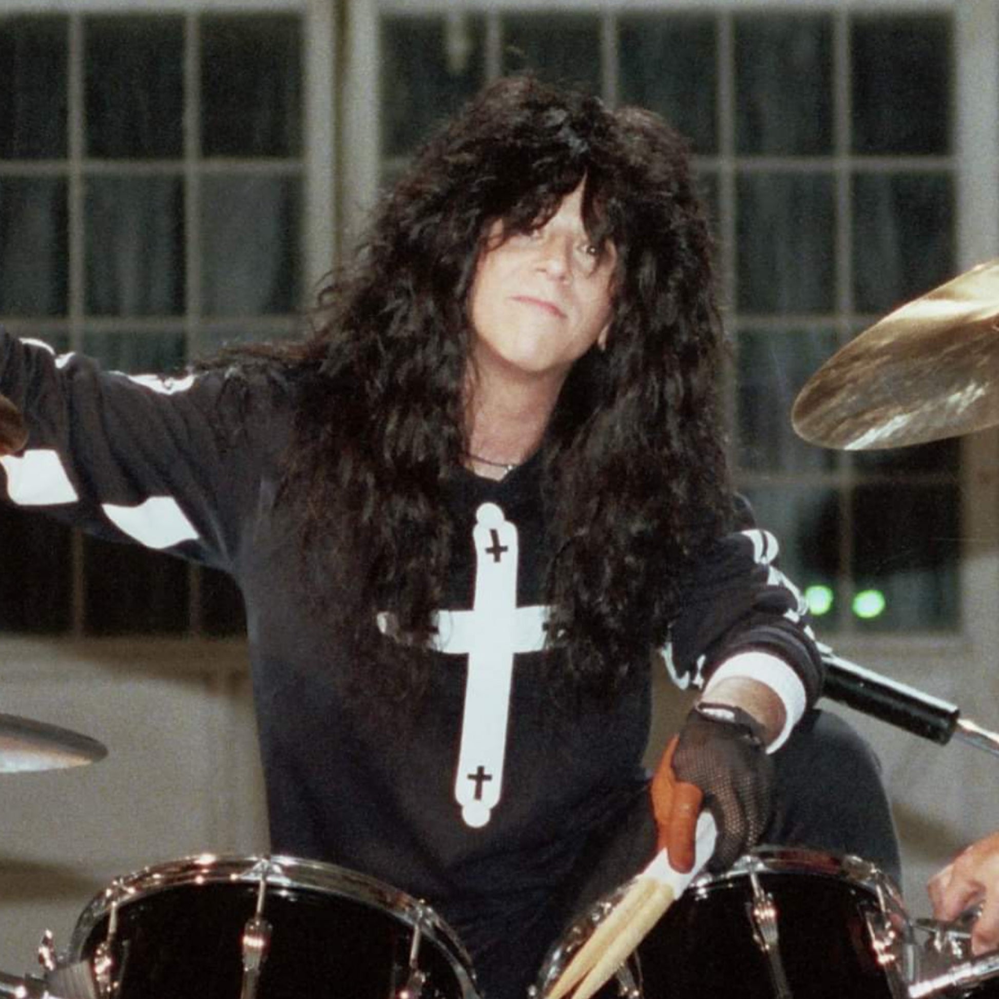 Although somewhat weakened by open-heart surgery and chemotherapy treatments just months before, Eric looked like his usual self (though sporting a wig) and pounded his massive Ludwig drum kit take after take at what proved to be an all-day, all-night video shoot.