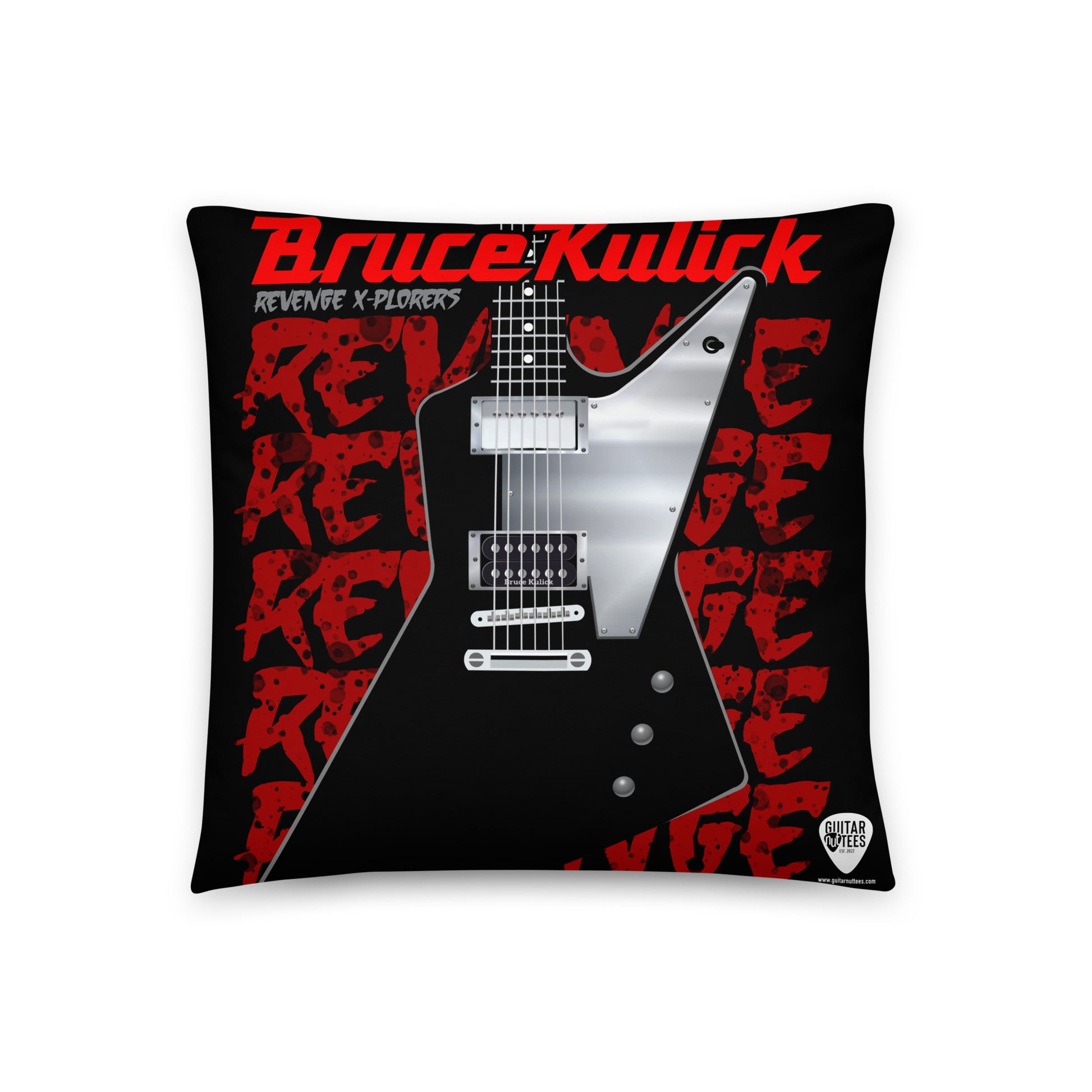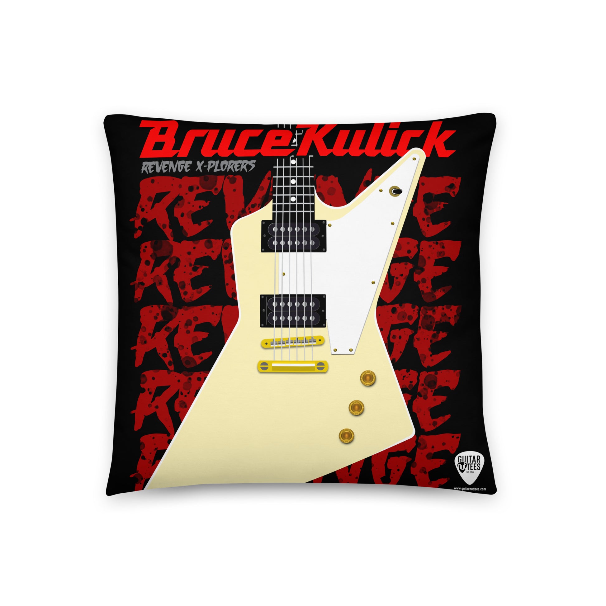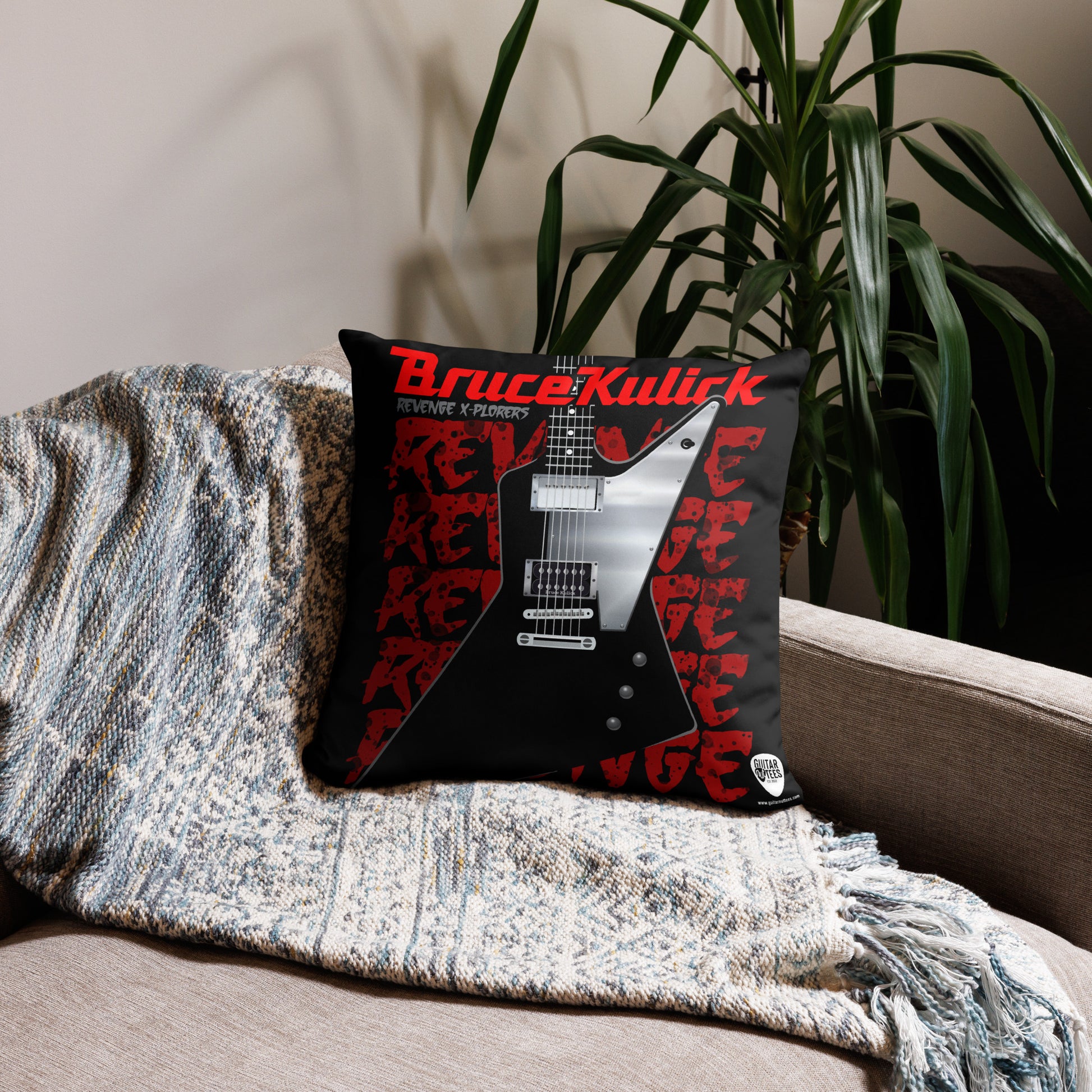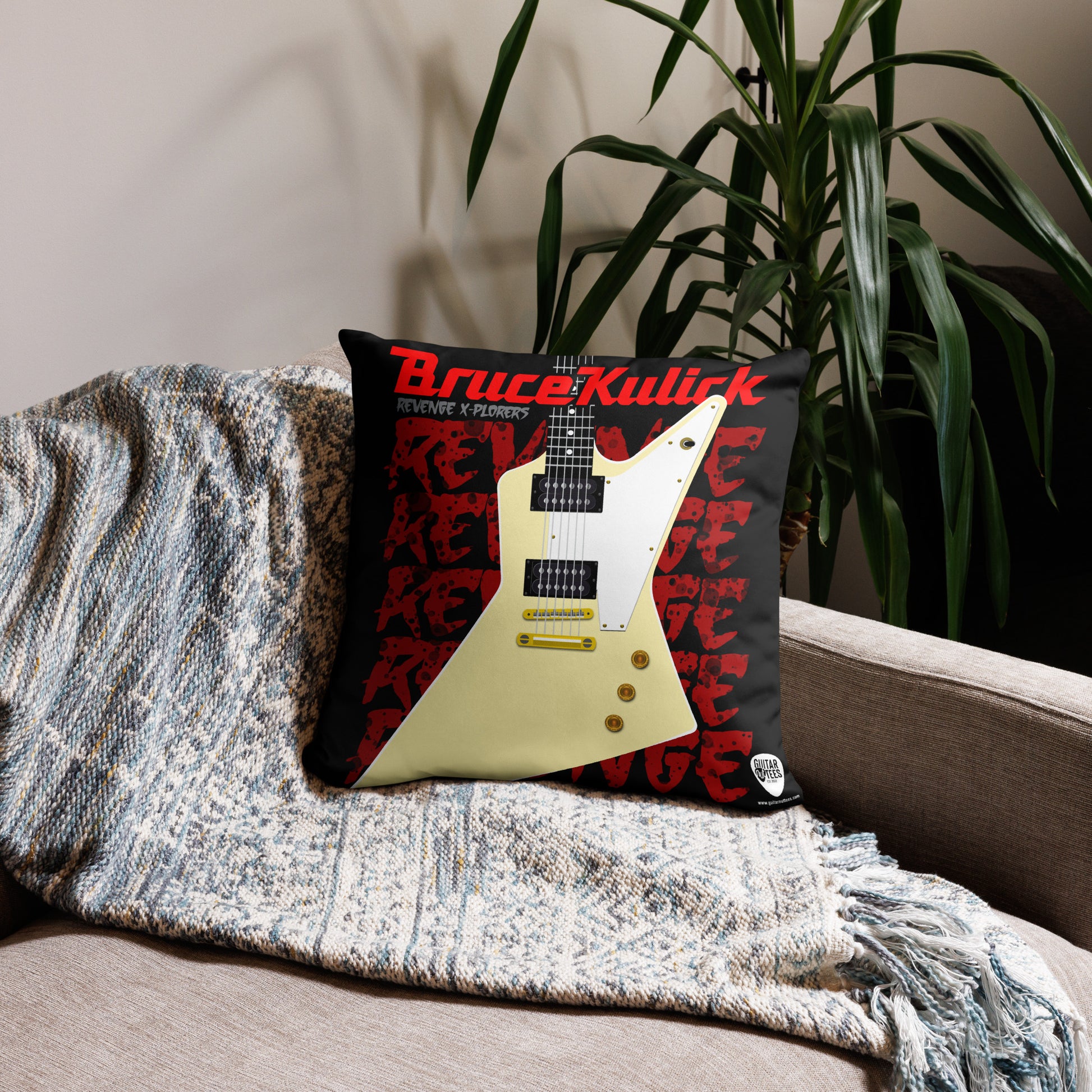 1992: Time for “Revenge”. Bruce took the stage armed with two new weapons in his guitar arsenal - the Black and White ESP Explorers. Used at every show, it wasn't uncommon to see the Black Explorer featured during KISS classics such as "Parasite" and "100,000 Years", while the White Explorer saw stage time during "I Want You", "Take It Off", and others. When asked how he kept his eyes on his guitar instead of the group of gorgeous strippers during "Take It Off", Bruce replied, "It was a challenge, but I love my guitars just as much as a sexy woman!” This guitarist is faithful to his music and instrument. Now, you can hold your own guitar pillow featuring these iconic instruments from the Revenge tour!