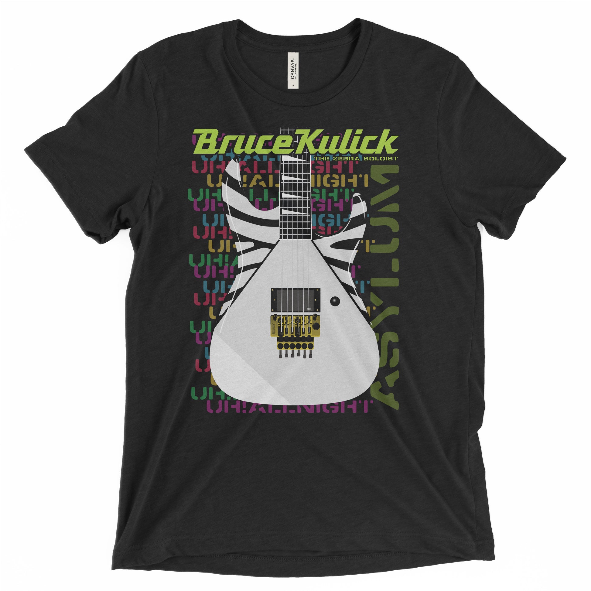 This guitar was a true rock machine featuring neck-through construction, a single EMG humbucker, an original Floyd Rose tremolo system, and eye-catching gold and black hardware. Bruce relied on this instrument extensively throughout the entire 1985-1986 KISS Asylum tour. However, its most notable appearance came in KISS's "UH! All Night" music video, where Bruce exclusively used the Zebra Soloist!